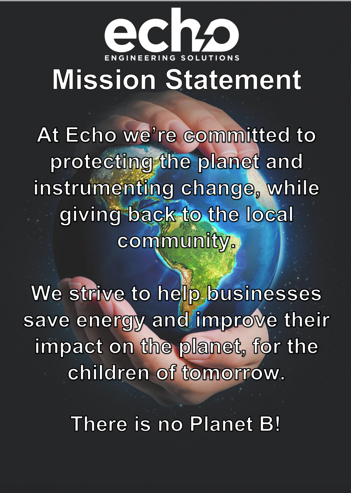 We’ve updated our mission statement to reflect the climate change emergency. At Echo we believe we all need to do more and have a part to play in the fight against climate change.